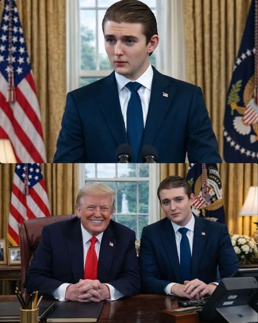 The Oval Office that afternoon looked exactly the way it always did during senior briefings. Folders lay neatly stacked across the table. Advisors sat shoulder to shoulder, flipping pages, waiting for cues. The mood was procedural, controlled, familiar. Donald Trump stood slightly away from the Resolute Desk, listening as an aide wrapped up a routine update. He appeared focused, reserved — not performing, not commanding. Then, without signaling for attention, he looked up. “A lot of people are saying they hope Barron Trump becomes the future President of the United States.” The room didn’t laugh. No one clapped. Instead, a pause settled — the kind that follows a remark people aren’t sure how to classify. Joke? Provocation? Signal?